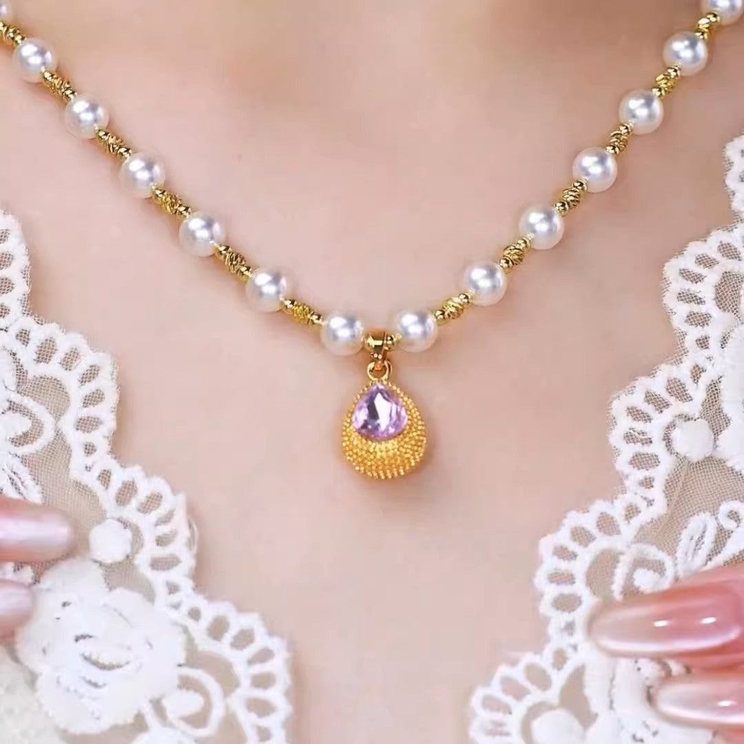 French-Style Purple Teardrop Durian Pearl Necklace for Women - Light Luxury Minimalist Design