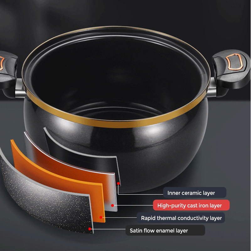 Material Layers: Enamel + Heat conduction layer + Cast iron + Inner ceramic wall