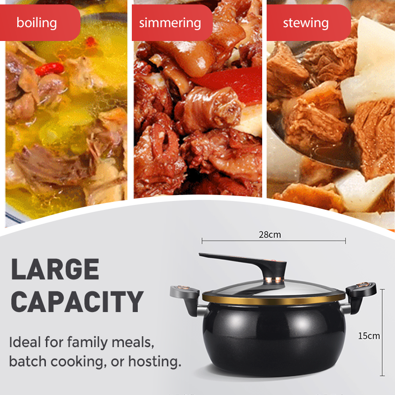 GENEROUS LARGE CAPACITY: Designed to handle big batches with ease, this pot is perfect for family meals, dinner parties, or meal prepping for the week.