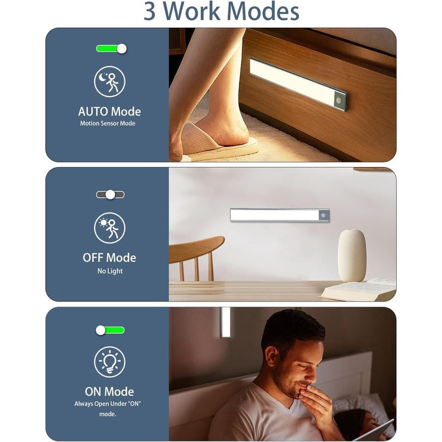 Ultra-thin dimmable sensor light strip, with three color temperatures: cool white, natural light, warm white and 0%-100% brightness adjustment, flexible light, not dazzling. The human body sensing mode lights up to meet the needs of different scenes.