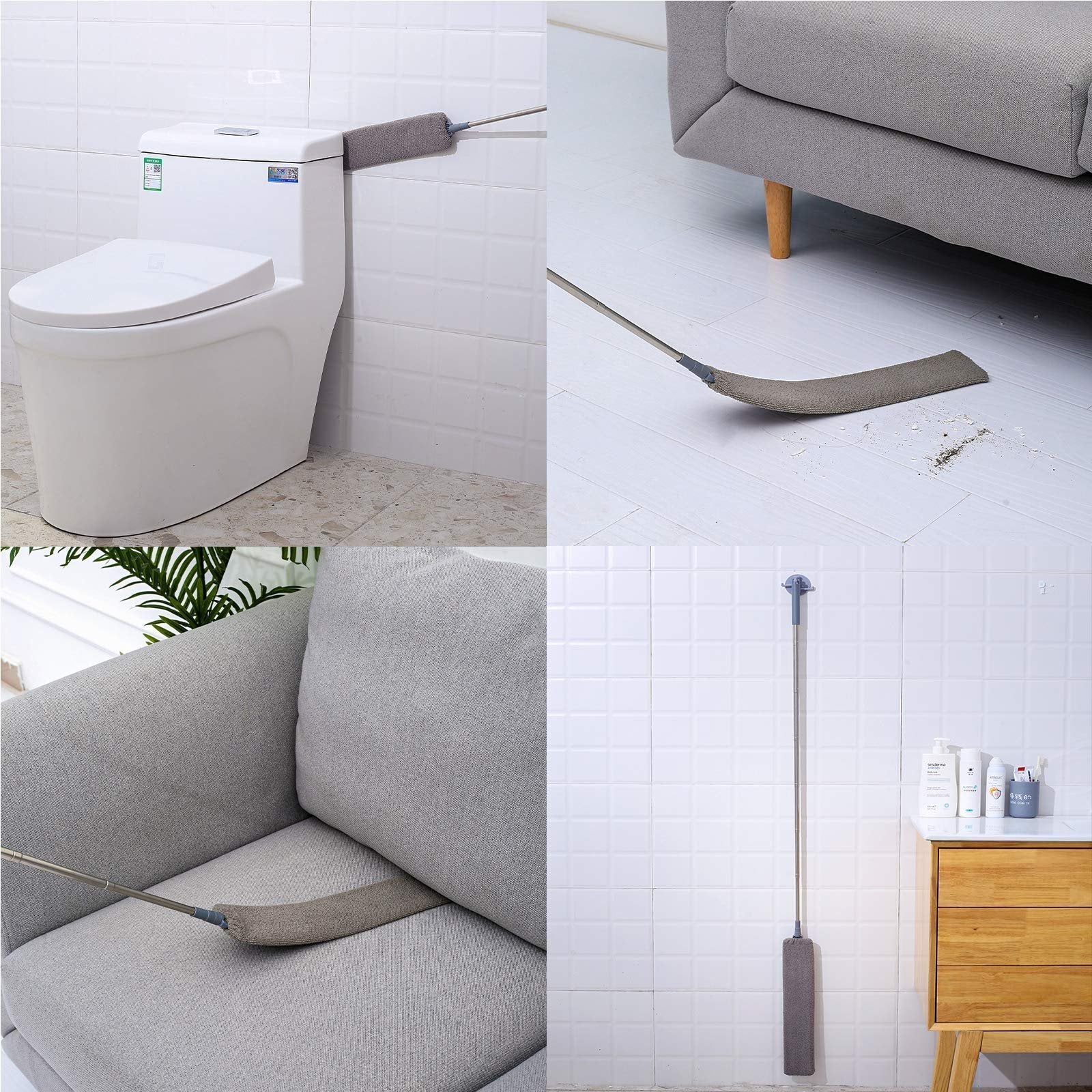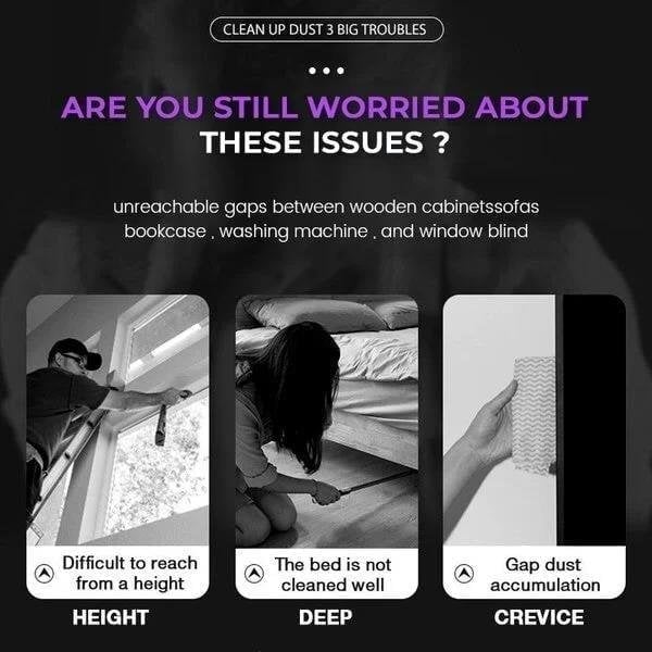 Retractable Gap Dust Cleaner clean gaps easier and quicker with the flat design, it can reach the narrowest gap and attract dust and hair firmly, while cutting down your dusting time.